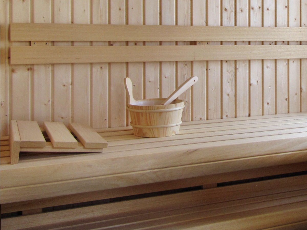 und im Erdgeschoss mit ebenerdiger Dusche und einer integrierten Sauna.
