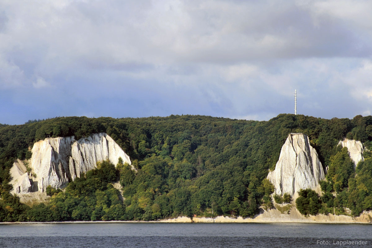 Die bekannten Kreidefelsen der Stubbenkammer mit dem markantesten Kreidefelsen "Königsstuhl" befinden sich im Nationalpark Jasmund. Der Name Stubbenkammer leitet sich aus dem Slawischen ab: Stopin steht für Stufe und kamen für Fels.